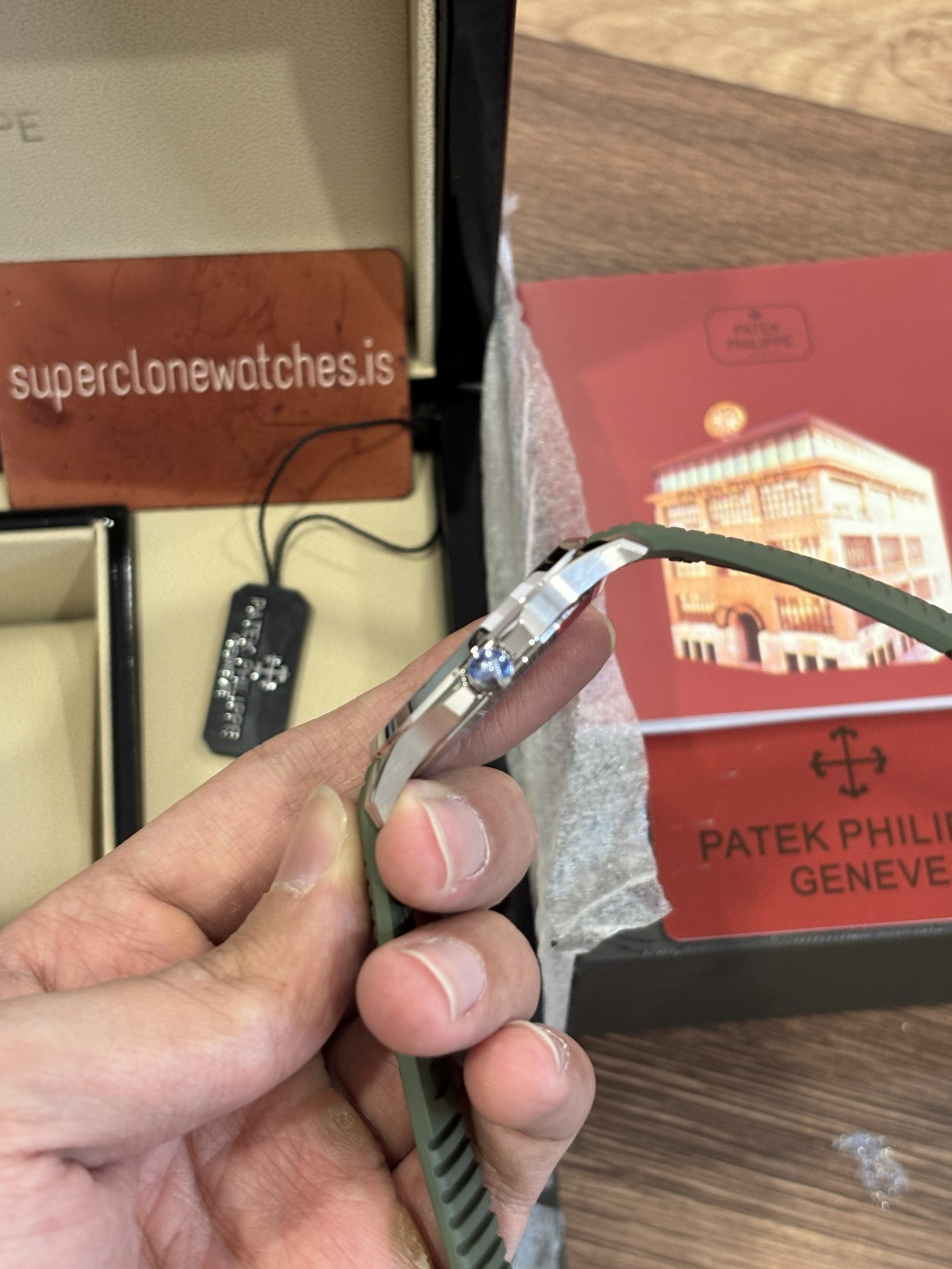- High Quality Replica Patek philippe Aquanaut Watches are built with 316L Stainless steel, which gives this Patek Philippe Aquanaut Replica exactly same shine & finish as real because the real one is built of 316L stainless Steel. If someone tries to Compare your Patek Philippe Super Clone V Real they’ll fail miserably as this 1:1 Replica Patek Philippe imitation is 100% Exact Patek Philippe Aquanaut Clone.