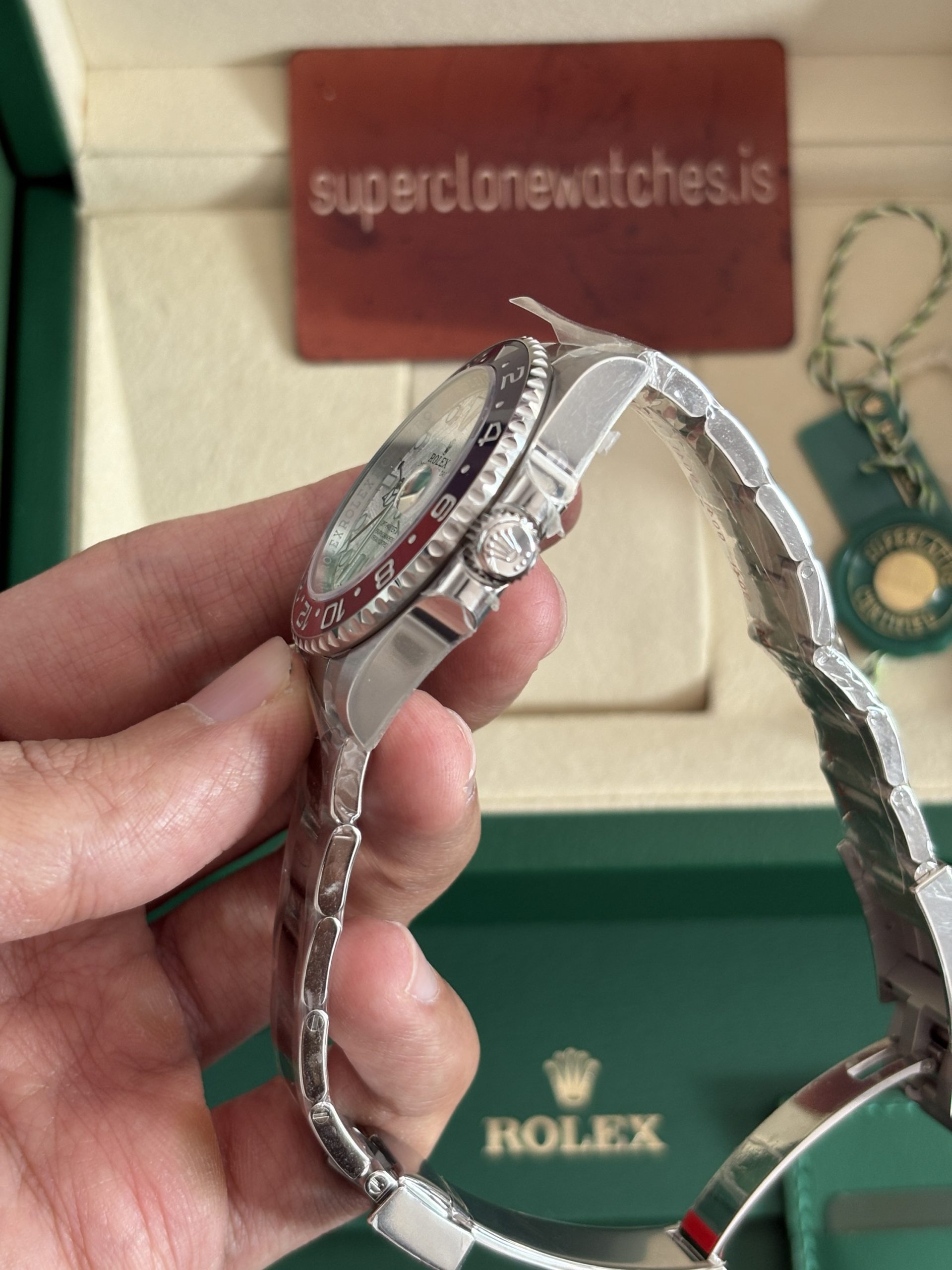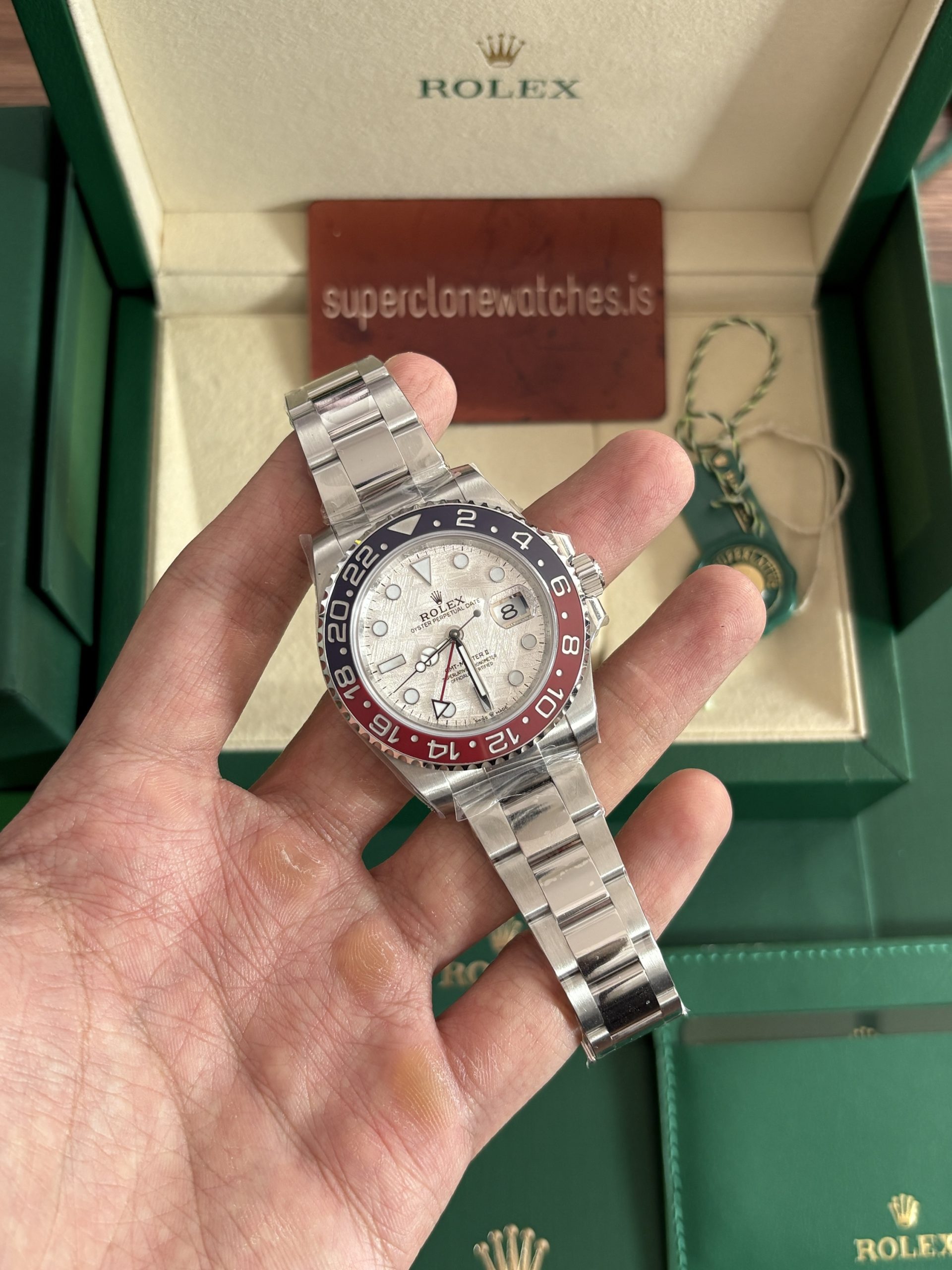 Such a Crowd Pleasing watch is a must have in your collection which forces us to present you this best 1 to 1 clone GMT Master II meteorite Dial Pepsi 2021 Super clone .